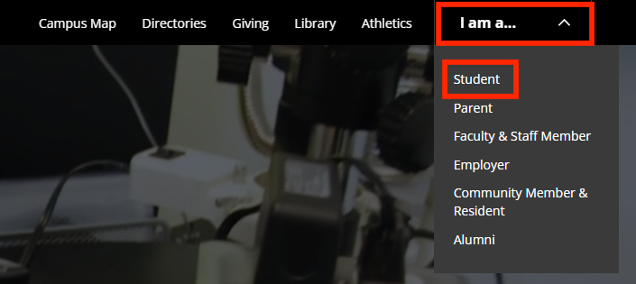 2. Select I am a... in the top right corner of the page and then select Student from the drop-down menu.