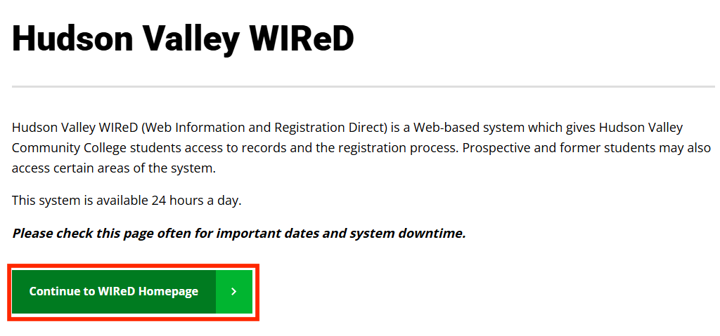 For assistance with identifying and/or troubleshooting your college email and password needed to access WIReD, visit Student Username and Password Help.